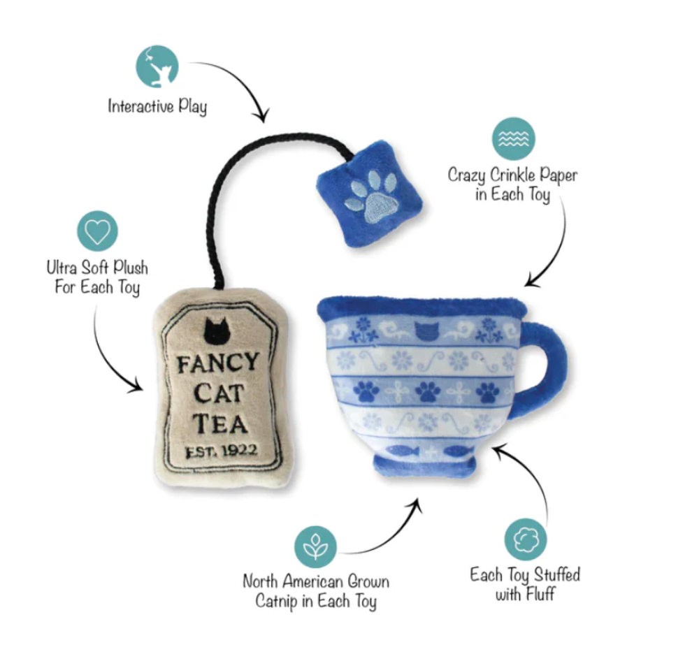 Petshop by Fringe Studio “Tuna Right Meow” 2 piece toy set is purrfect for the busy kitty. Stuffed with fluff, crazy crinkle paper, and North American grown catnip, these toys were designed with interactive play in mind.