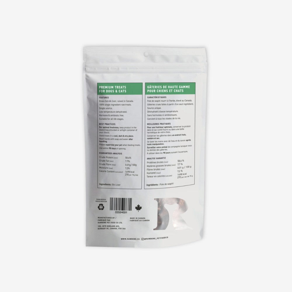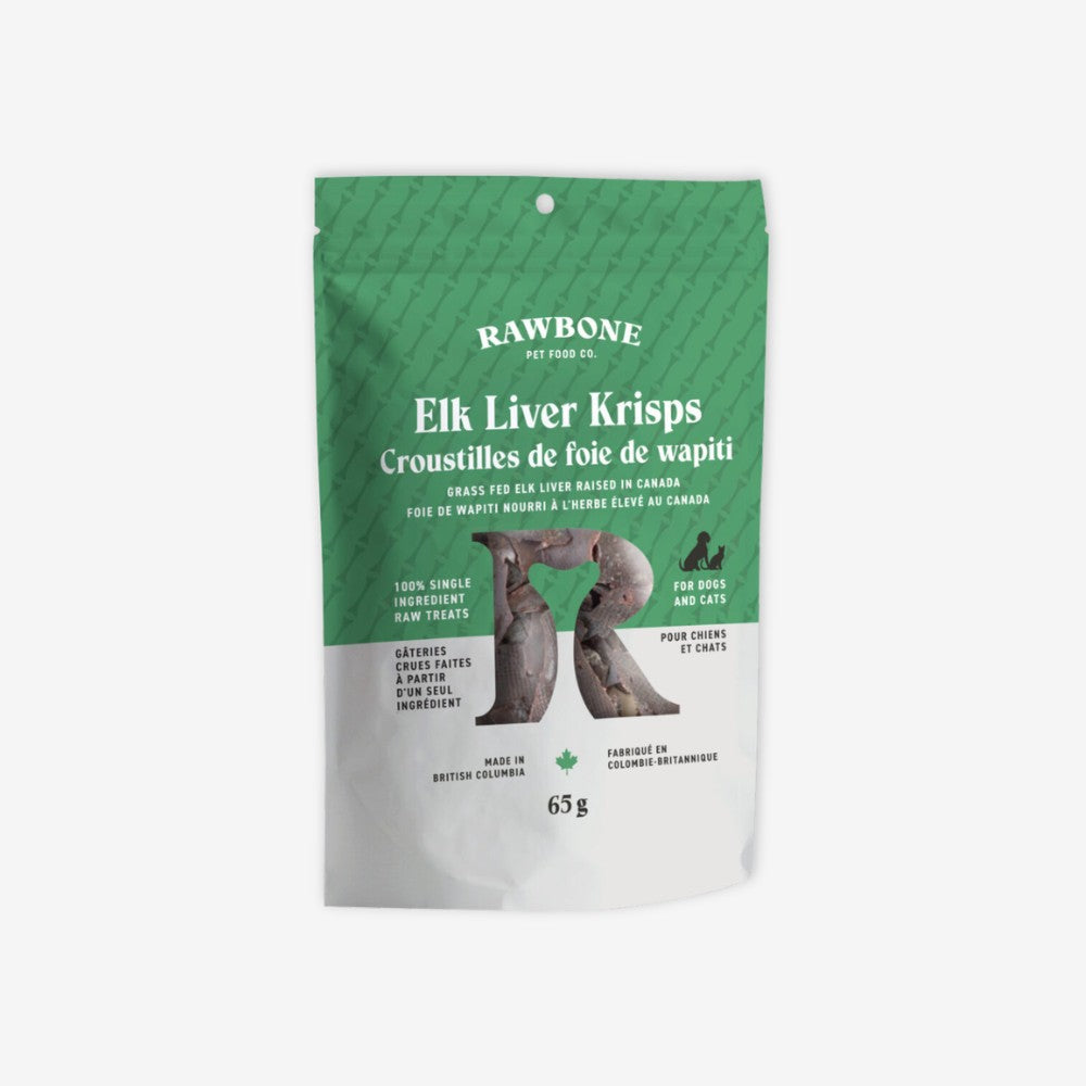 Rawbone Elk Liver Krisps are premium single-ingredient dog treats made from gently dehydrated elk liver. These crunchy, nutrient-dense treats provide a natural source of protein and are perfect as a high-value reward for training or everyday snacking.