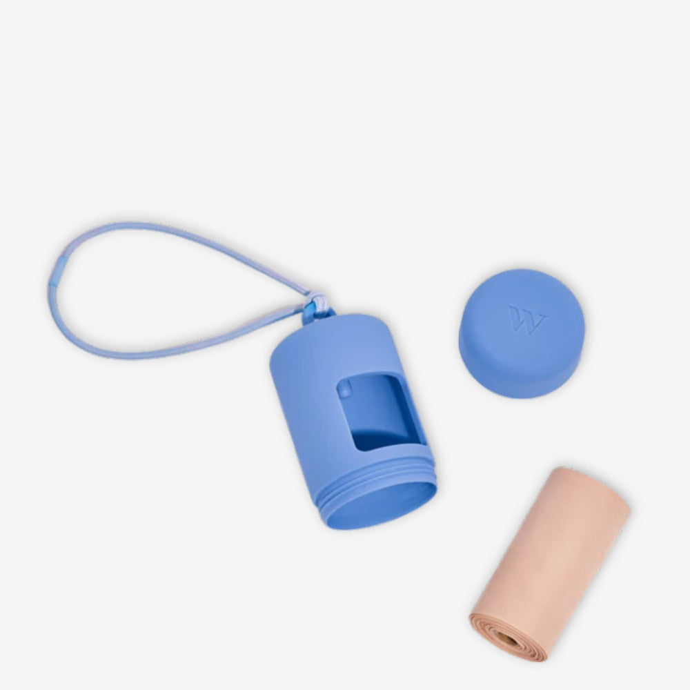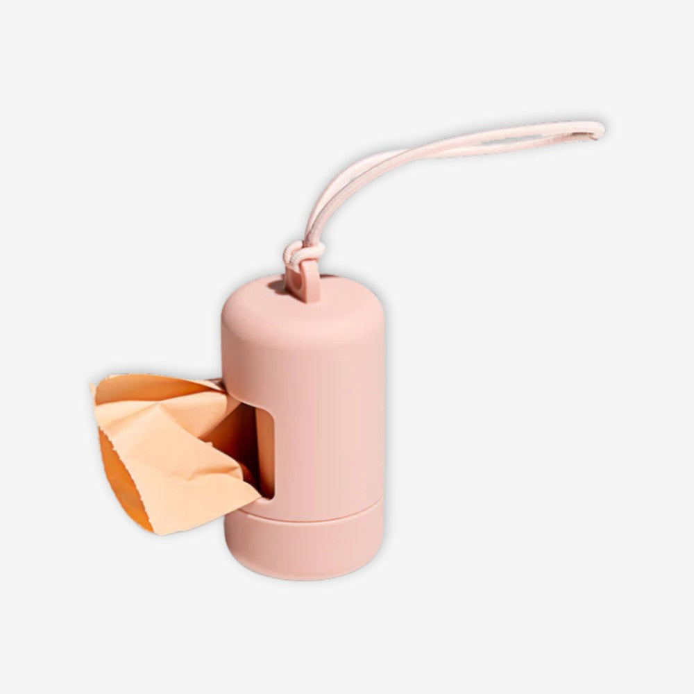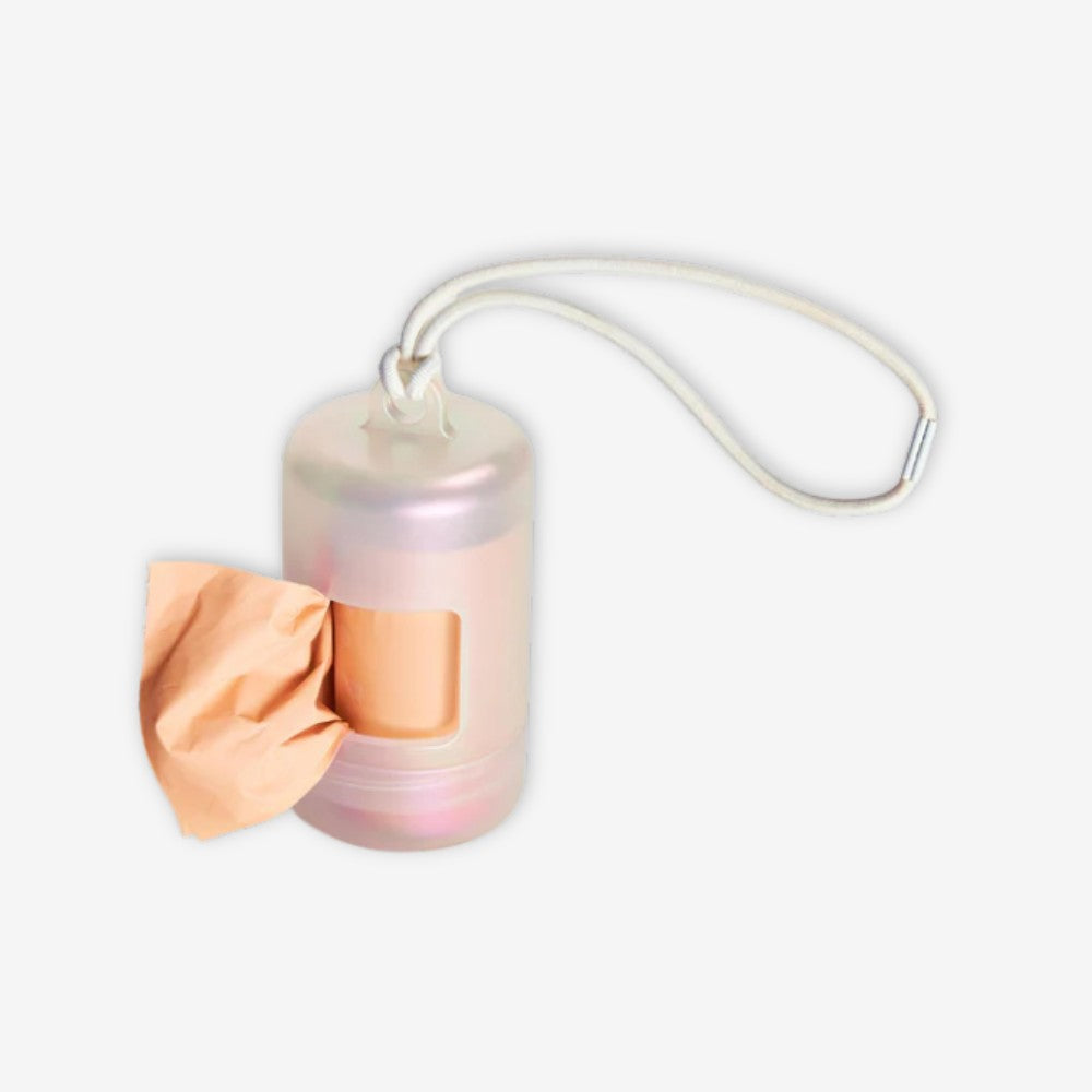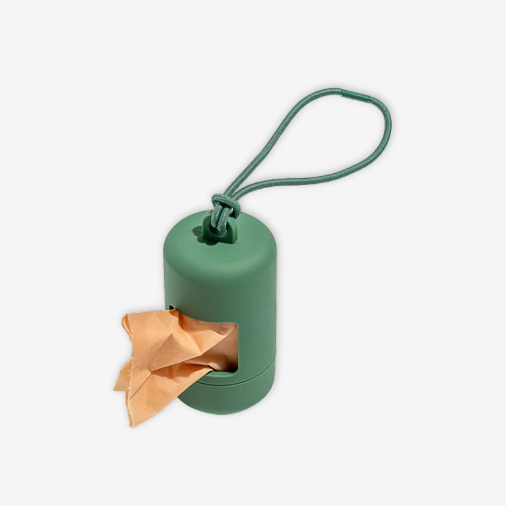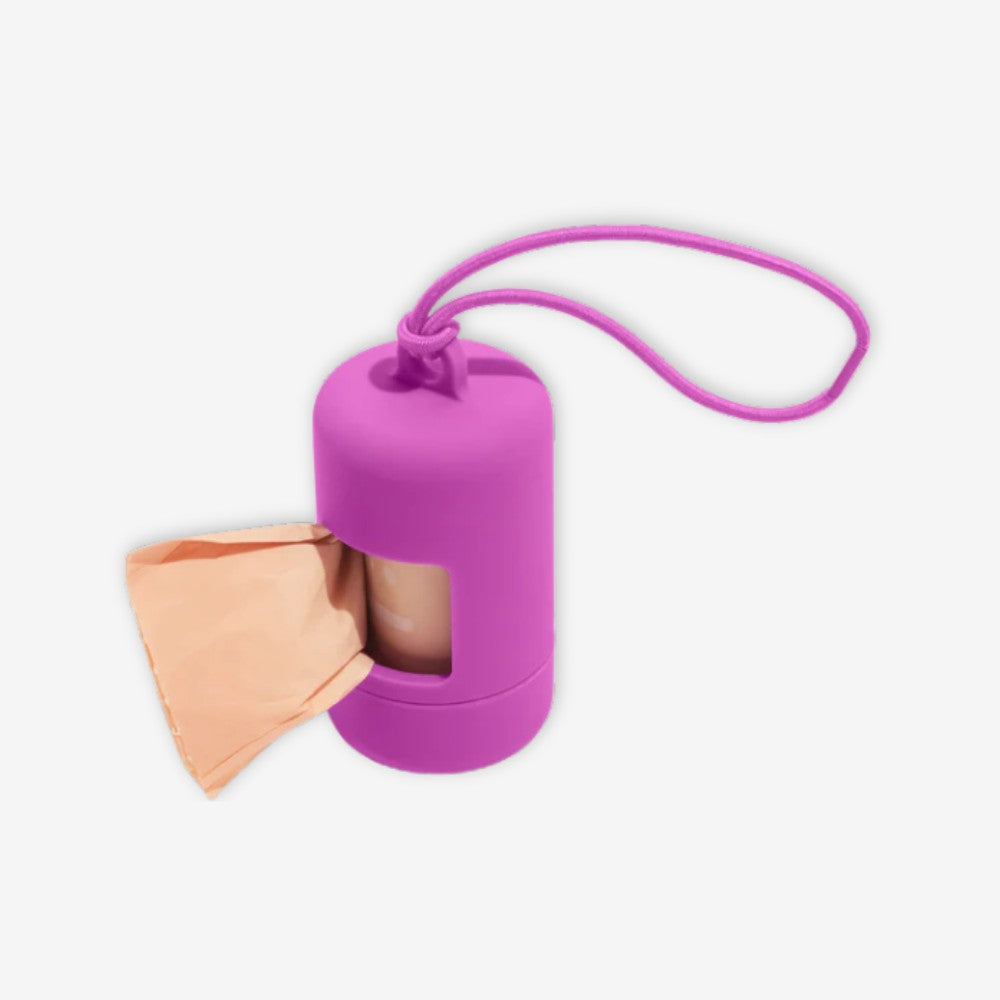 A happy home for poop bags. Complete with an elastic strap to easily attach onto any leash or tote, a twist top to make reloading a breeze, and a complementary roll of our eco-friendly Poop Bags! Materials: Soft-touch plastic shell and elastic band with iron clasp. Easy Leash Attachment - Simple elastic loop that attaches to anything Smart Design - Twist-top & built-in bag stabilizer for quick reloads 1 Roll on Us - Includes a free roll of our eco-friendly Poop Bags Product Dimensions & Specs: Diameter: 1.75" Height: 3.5"