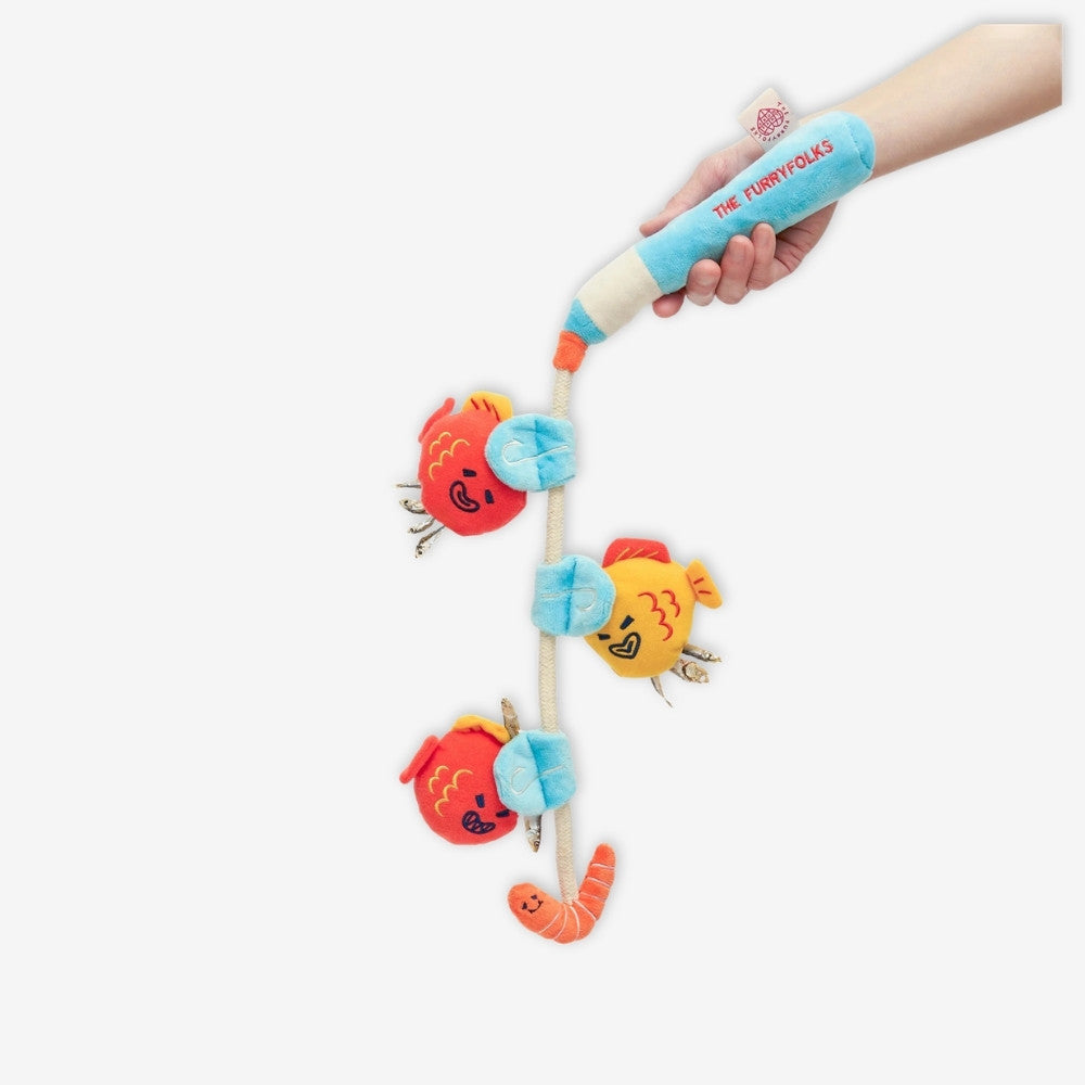 The Furryfolks Fishing Nosework & Tug Dog Toy is an interactive enrichment toy designed to combine sniffing games with tug play. The playful fishing-line design features multiple plush fish attached to a rope, creating a fun challenge that keeps dogs mentally stimulated and physically active.