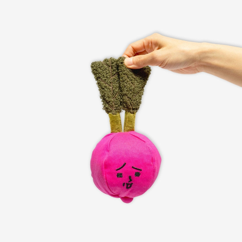 • Soft plush design shaped like a playful radish