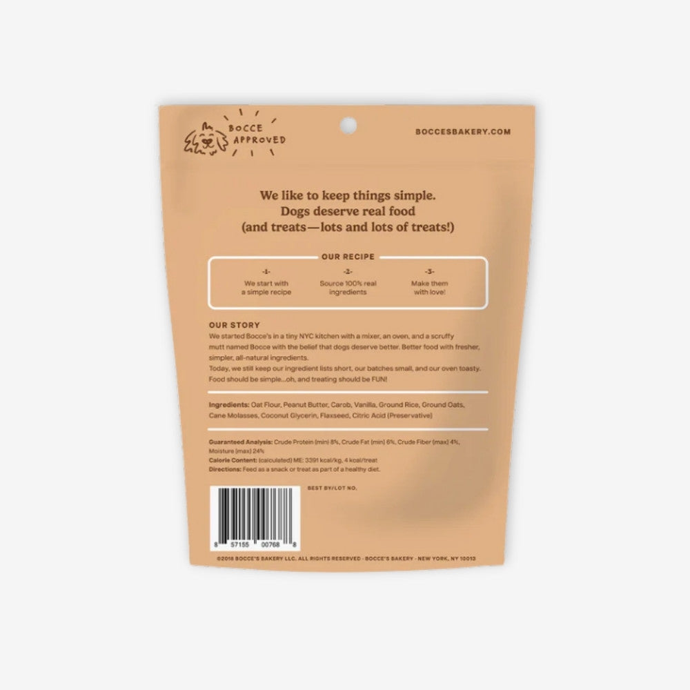 Ingredients: Oat Flour, Peanut Butter, Carob, Vanilla, Ground Rice, Ground Oats, Molasses, Coconut Glycerin, Flaxseed, Citric Acid