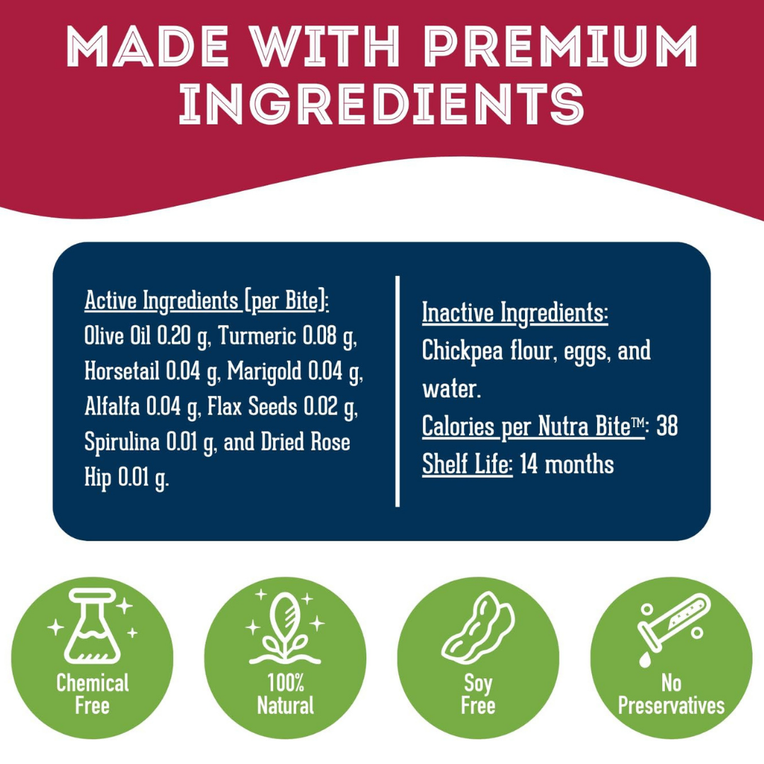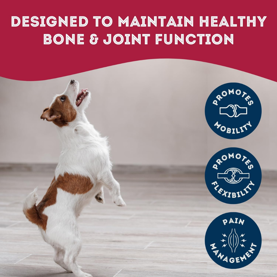 Joint & Bone Supplement Dog Herbal Bites are crafted to enhance your dog’s bone and joint health, supporting their mobility and flexibility. * Made with all Natural Ingredients * Hormone-free & antibiotic-free, Made in Canada * Vet Recommended * This supplement is only sold in Canada * 240g Pack These vet recommended, all-natural herbal bites are specially formulated to help your dog stay active and comfortable by promoting healthy joint function and reducing stiffness. Our healthy herbal supplements are all natural, chemical- free and utilize the same plants and herbs your dog would seek in nature. The carefully selected herbal ingredients in these bites work together to nourish the joints, improve mobility, and ease discomfort associated with age or joint stress. They support cartilage health, help manage inflammation, and encourage smooth, pain-free movement. These supplements are also beneficial for maintaining a healthy weight, which can reduce the strain on joints and bones.