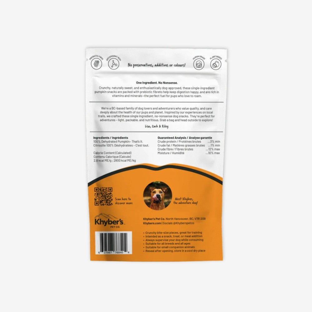 Naturally rich in prebiotic fibre, vitamins, and essential minerals, these gently air-dried pumpkin snacks are as functional as they are tasty — helping support healthy digestion, regularity, and overall vitality, whether your pup is trailblazing through the forest or cruisin’ the beach.