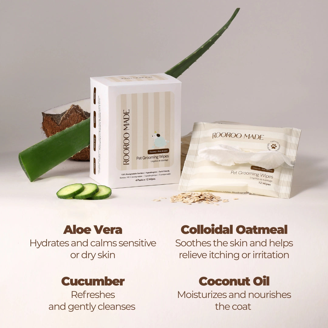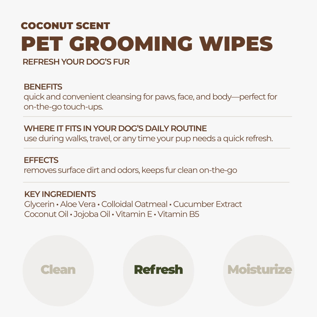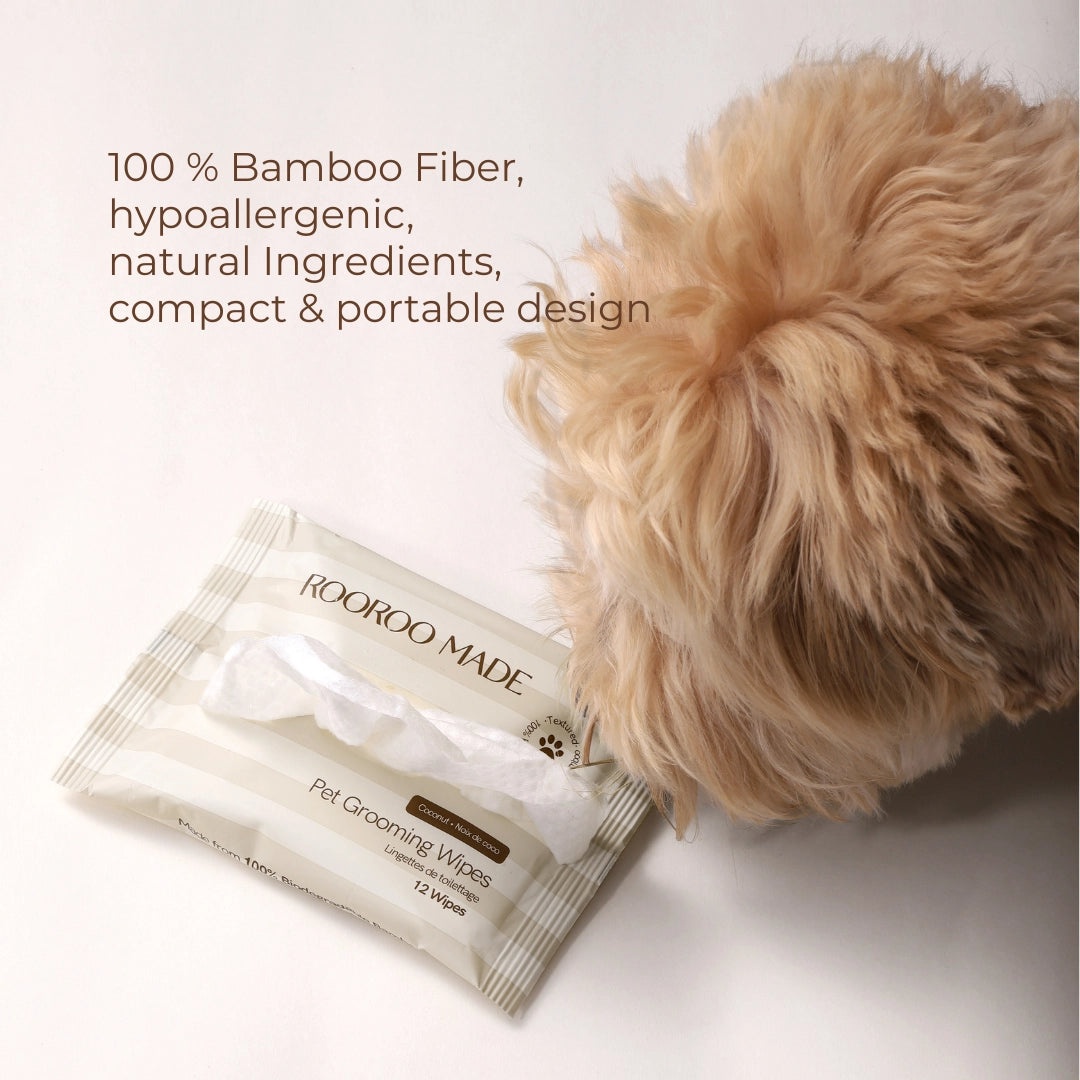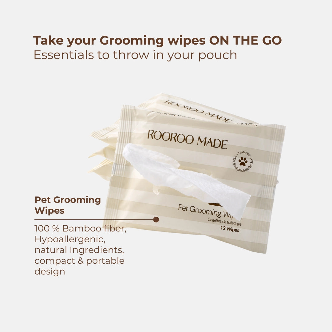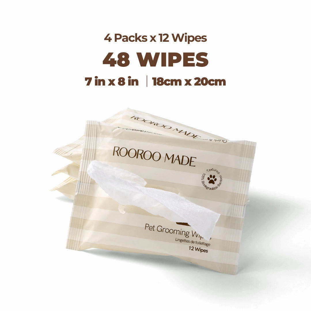 Crafted from 100% biodegradable bamboo, these wipes provide a soft, hypoallergenic touch that’s gentle on your dog’s sensitive skin. Stay prepared for every adventure with our ultra-convenient Pet Grooming Wipes. Each box contains 4 individually packed sets (12 wipes per pack). Compact & portable packs are designed for modern pet parents on the go.